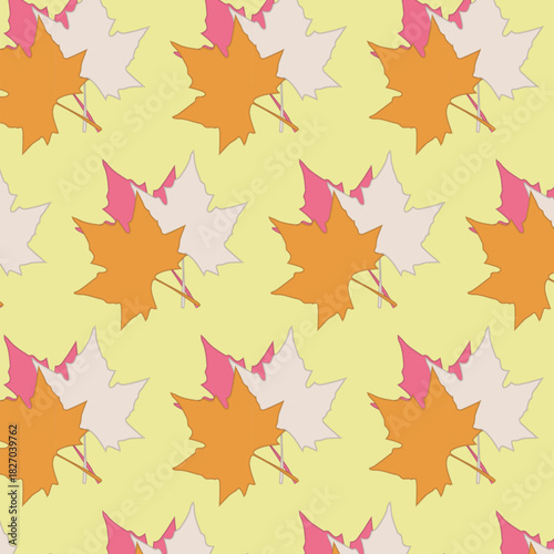 © Nur Mohammad, Fototapeta premium Autumn Maple Leaf Seamless Pattern on Light Yellow Background