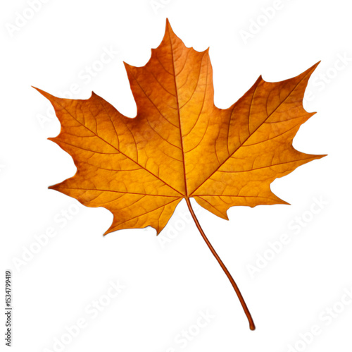 © Aleksandr, Fototapeta premium Autumn maple leaf, vibrant orange color, isolated on transparent background