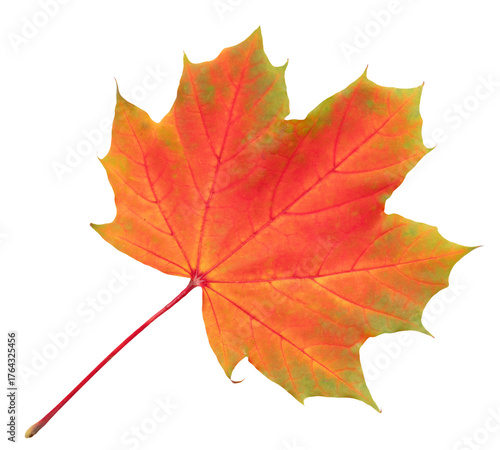 © lms_lms, Obraz premium Autumn Maple Leaf With Vibrant Orange And Red Tones Isolated On transparent Background