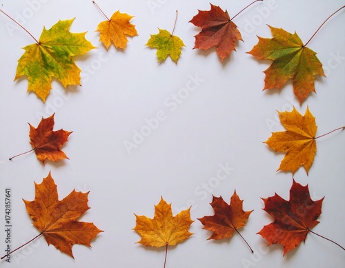 © em113, Fototapeta premium Autumn maple leaves arranged on white background