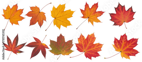 Fototapeta premium Autumn maple leaves vibrant fall colors isolated on a transparent background