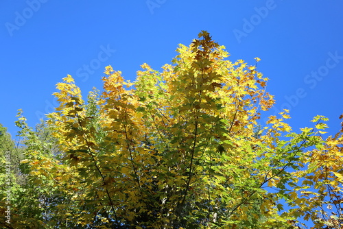 Fototapeta premium autumn maple leaves with a blue sky