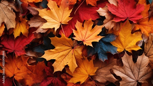 Obraz premium Autumn maple tree leaves full frame arrangement with many colorful leaves