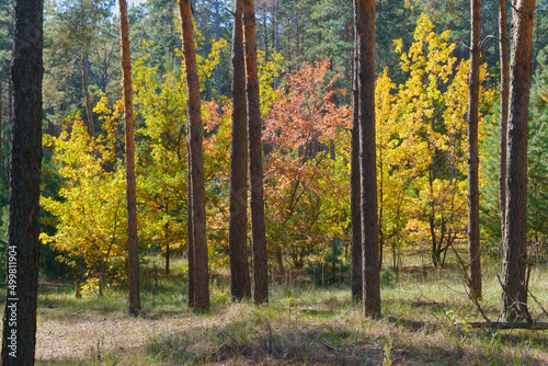Obraz premium Autumn mixed forest at Tsarychanka forestry, Dnepropetrovsk Area, Ukraine.