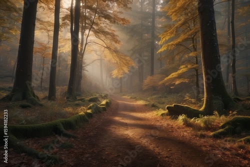 © SADEWA, Fototapeta premium Autumn morning in old forest