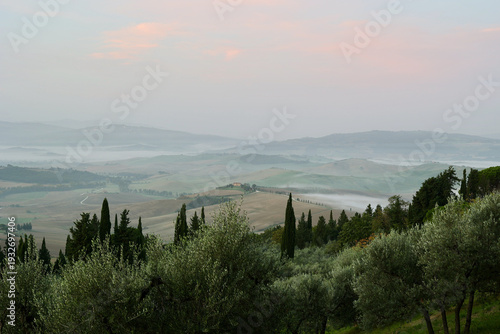 Fototapeta premium Autumn Morning Mist Near Pienza, Tuscany Landscape