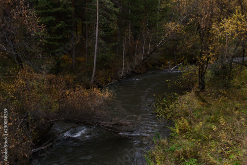© Sench, Obraz premium Autumn mountain forest landscape with roads and rivers