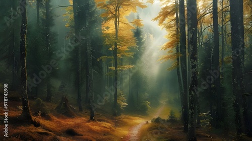 © manapaund, Fototapeta premium Autumn mountain scenery with colored leaves