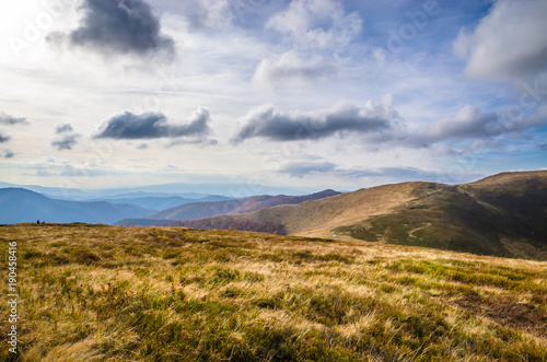 Fototapeta premium Autumn mountains in cloudly day