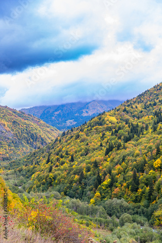 Obraz premium Autumn mountains with yellow-green trees