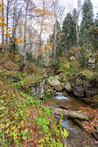Naklejka premium Autumn, nature walks, mountain panorama, stream sources and hiking trails,...