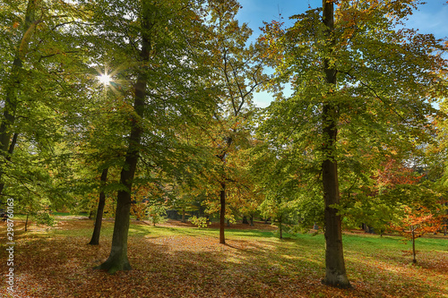 © tadeas, Fototapeta premium Autumn nature with sun rays