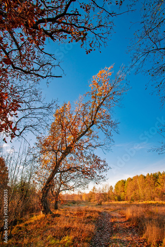 © sergofan2015, Fototapeta premium Autumn oak forest with a path.