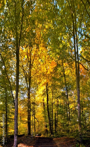 Obraz premium autumn on an alley with stairs in a forest