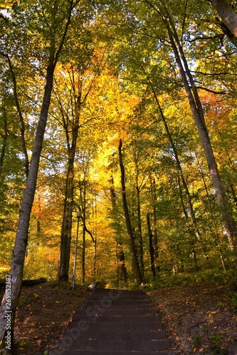 Obraz premium autumn on an alley with stairs in a forest
