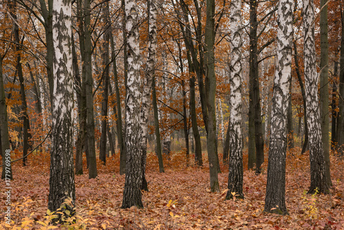 Obraz premium Autumn park with yellow fallen leaves. Nature