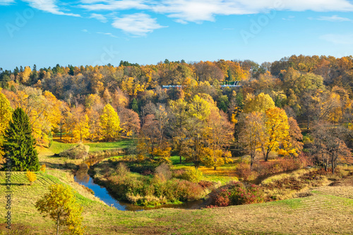 © Andrei Nekrassov, Fototapeta premium Autumn park with yellow trees. Toila, Estonia