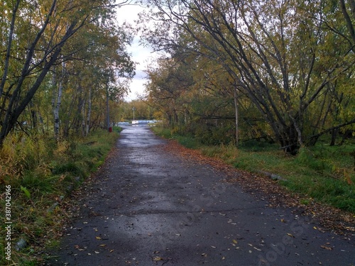 © spphotolab, Fototapeta premium autumn path at sunset landscape in the Park