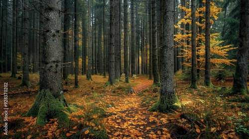 © diracreativa, Fototapeta premium Autumn Path in a Dense Forest