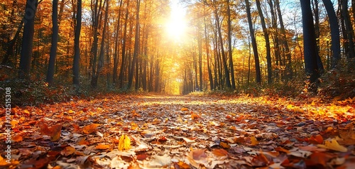 Obraz premium Autumn path in forest with leaves