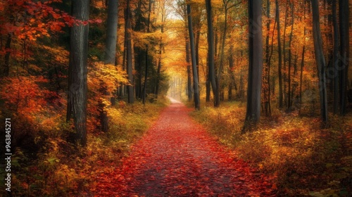 © IMAGINIAC, Obraz premium Autumn Path Through a Golden Forest