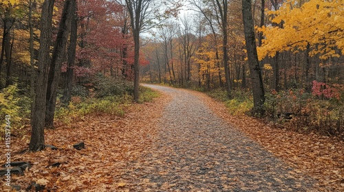 Obraz premium Autumn Path through Colorful Woods: A Serene Journey into Fall's Embrace
