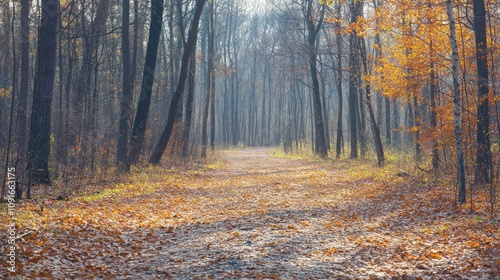 Obraz premium Autumn Path Through Golden Forest Trees
