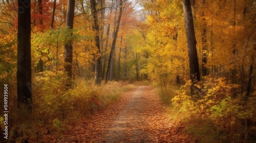 Obraz premium Autumn Path Through Golden Forest Trees