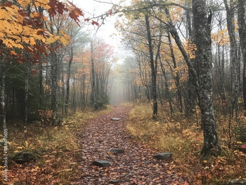 Obraz premium Autumn Path Through Misty Forest Trees