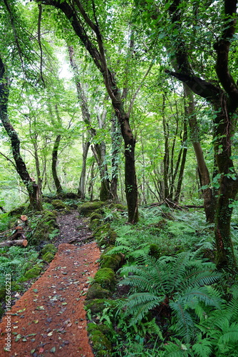 Fototapeta premium autumn path through mossy rocks and old trees