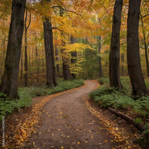 Naklejka premium "Autumn Path Through the Woods"