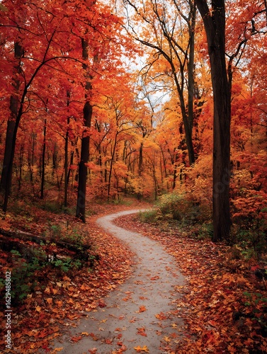 Naklejka premium Autumn Path Winding Through Colorful Forest