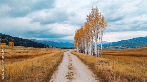 Naklejka premium Autumn pathway journey mountain valley landscape