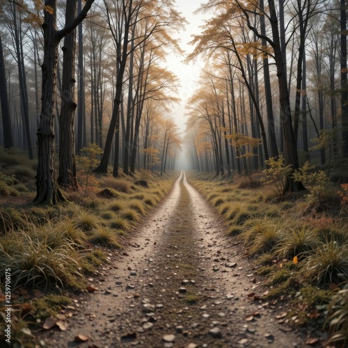 Fototapeta premium Autumn Pathway Through a Misty Forest