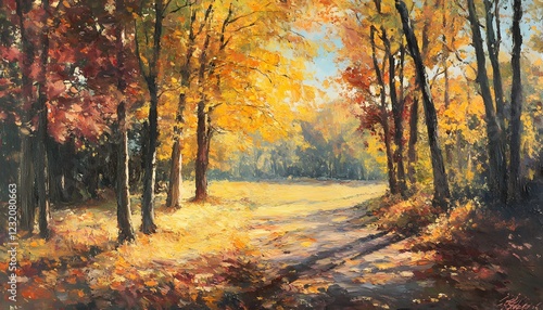 Naklejka premium Autumn Pathway Through Golden Woods Landscape