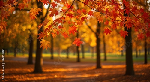 © harisluthfi, Naklejka premium Autumn Pathway with Sun Glow