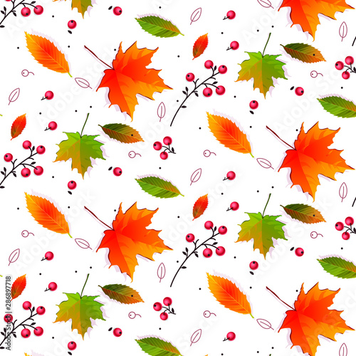 Obraz premium Autumn pattern with leaves,Leaves maple, mountain ash, oak, birch.