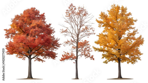 © Aiwonders, Fototapeta premium Autumn Pin Oak Trees Isolated on Transparent Background – Quercus Palustris Cutout PNG Set