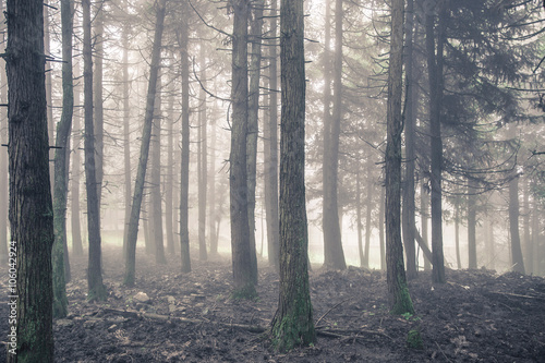 © F16-ISO100, Fototapeta premium Autumn pine forest in the fog