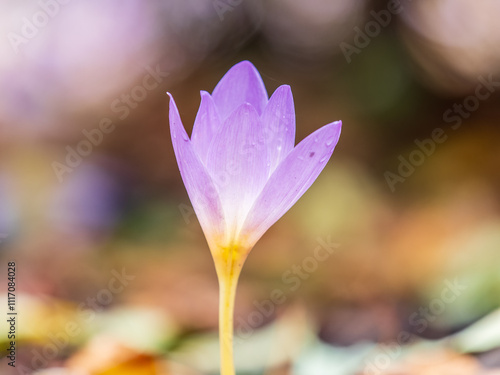 © Dmitrii Potashkin, Fototapeta premium Autumn purple crocuses bloomed above the ground.