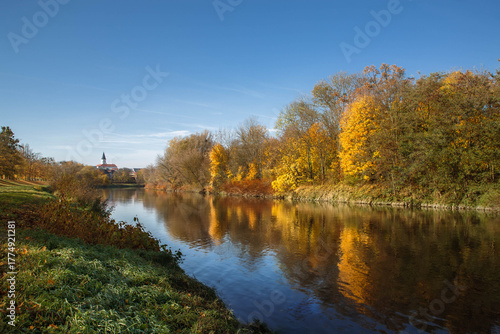 Fototapeta premium Autumn river gold colors Becva