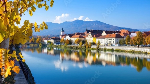 © Hartanto, Fototapeta premium Autumn River Reflections in Town