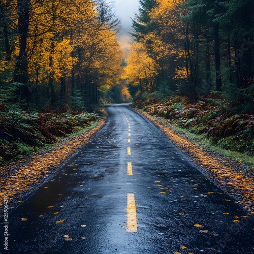 © 豆豆 胡, Fototapeta premium Autumn Road in a Misty Forest