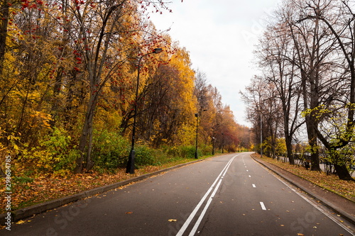 Fototapeta premium Autumn road in a park.