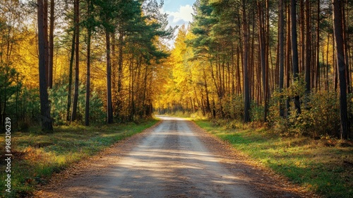 © hanafi 99d, Obraz premium Autumn Road in Forest