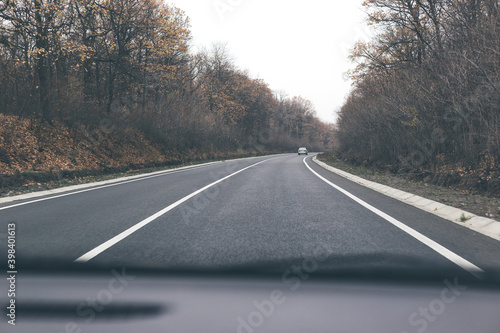 © BearOK, Fototapeta premium Autumn road landscape. View from the car.