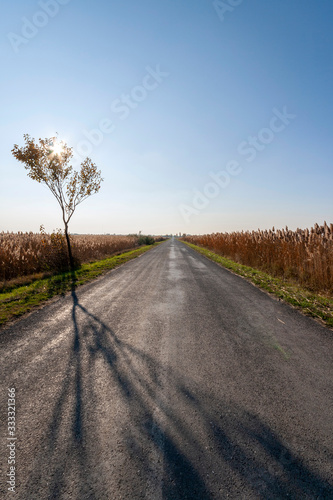 Fototapeta premium Autumn road on the Great Hungarian Plain