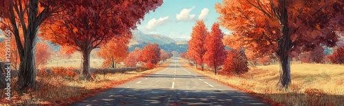 © LyceeChee, Obraz premium Autumn Road Scene With Colorful Trees And Scenic View
