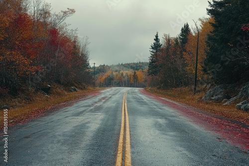 © LyceeChee, Fototapeta premium Autumn Road Through Colorful Foliage Scenic Drive