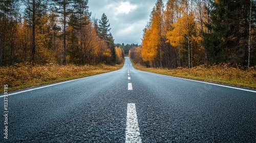 © Infinity, Fototapeta premium Autumn Road Through Colorful Forest